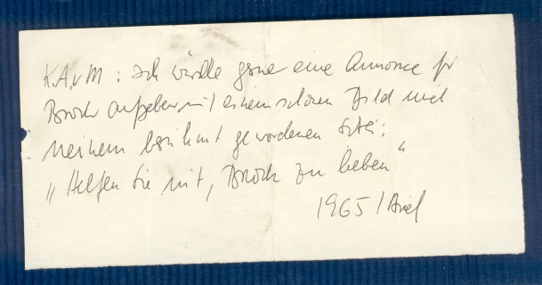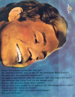 Auszüge zu ‚Brock persönlich‘ aus der gleichnamigen Autobiographie Bazon Brocks, erschienen im Melzer-Verlag, Darmstadt 1968. Andere Auszüge aus der Autobiographie finden sich hier in der Edition in Band I, Teil 3.4, in Band II, Teil 2.3, in diesem Band, Teile 1.3 und 1.4, A A.3, 4 A.10.2