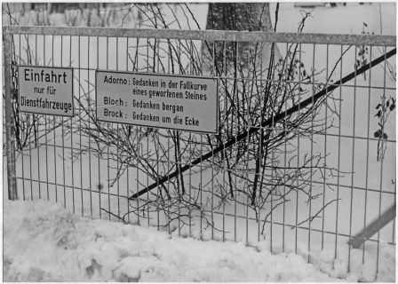 Vereinzelte Texte im unerwarteten Kontext, da diese Literaturbleche in Lebensumgebungen angebracht wurden, in denen man üblicherweise nur Verkehrs- und Ladenschilder, Verbots- und Gebotstafeln erwartet: an Gartenzäunen, Garageneinfahrten, Hauswänden.