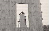 Zum Aycock-Turm: Im Alltag gehen wir davon aus, daß jede Architektur für uns durch eine Innen-/Außenbeziehung gekennzeichnet ist. Türen und Fenster in einem Haus regulieren diese Beziehung von drinnen und draußen, von draußen und drinnen. Sehen wir den Aycock-Turm als normale Architektur und gehen um ihn herum, dann bemerken wir, daß er auf keiner Seite eine Öffnung bietet. An der vierten Seite steht jedoch eine Leiter, und wenn man sie hochsteigt, wird einem plötzlich klar, daß die normalen Innen-/Außenbeziehungen einer Architektur umkippen in eine Oben-/Untenbeziehung. Innen/außen wird erfahrbar als oben/unten. Wenn wir diese Erfahrung nun wieder auf die Alltagsarchitekturen übertragen, erschließen sie sich uns in der bisher ungewohnten Dimension einer Oben-/Untenbeziehung, die unter Umständen unsere Einstellung verändert, wenn auch nicht so weit, daß wir zu Hopi-Indianern werden, die ihre Architekturen ganz selbstverständlich vornehmlich als Relation von oben und unten interpretieren.