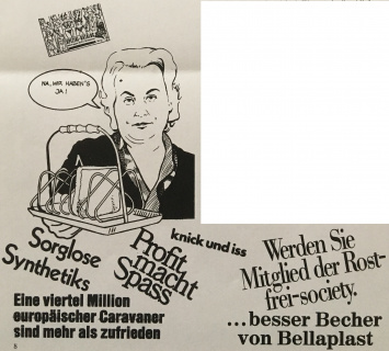 Wegwerfen! Die entscheidendste Veränderung im kulturellen Verhalten der Deutschen während der sechziger Jahre. Waren die Schlager der fünfziger Jahre verständlicherweise noch Hemden aus Kunstfasern, die selbst von Panzerketten (Wochenschaubeispiele) nicht zerstört werden konnten, so galt nun das Hemd als einzig zeitgemäß, das garantiert nur einmal getragen werden konnte. Übrigens ist Papier ja nicht nur geduldig, sondern hat den Vorzug, umstandsloser als jeder andere Stoff beseitigbar zu sein. Man denke: Tageszeitungen aus einem Material, das sich nur schwer zerstören ließe; eine Katastrophe.