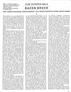 Zum zehnten Male: Bazon Brock: Ein Kritiker dessen, was es noch nicht gibt