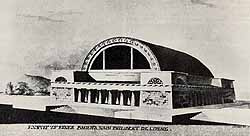 Auch das Anhalter-Bahnhofsgebäude besaß eine basilikale Struktur. Dieser Kopfbahnhof, das A und O des Reisens, nannte W. Benjamin "Mutterhöhle der Eisenbahnen". Hier wurde die Nähe der Ferne geopfert und die Begrenztheit des Alltags sollte in unbegrenzte Reiseträume überführt werden. Die Züge verließen die Bahnhofshalle, den Ort des Wandelns und Verwandelns, durch drei große Torbögen in die lichte Weite des Südens.