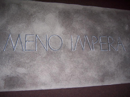 Meno impera bedeutet also die Unmöglichkeit, die eigene Vollendung mit Gewalt zu erreichen. Das gilt neben dem Leben auch für die Kunst. Wenn man ein Werkstück mit Gewalt in die exakte Entsprechung zu dem vorgängigen Plan zwingen möchte, entsteht Kitsch.