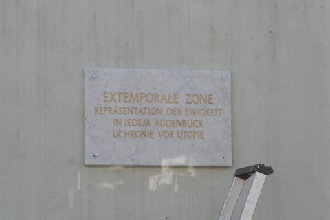 (3) Siehe Bazon Brocks Aktionen in München, Juli 2006, im Büro von Michael Krüger (Hanser Verlag), anschließend in Berlin, September 2006, am Bauhausarchiv und in der Volksbühne Ost: Verleihung der Marmortafeln mit der Inschrift „Extemporale Zone – Repräsentation der Ewigkeit in jedem Augenblick – Uchronie vor Utopie“. Zum Konzept extemporaler Zonen siehe Brock, Bazon: „Deklaration zum 12.9.: Der Malkasten wird extemporale Zone.“ In: ders., Barbar als Kulturheld, S. 189 ff.