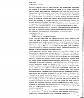 Das Schweigen ist die perfekte Anwesenheit der Sprache, ein Ton, der sich summiert, ein Wort, das auf sich selbst reagiert und sich eindrückt in das Metier, das es eben noch als Wort erkennbar sein ließ. Parallelaktionen der Worte führen zur Monotonie im Geräusch der sich abwickelnden Sprache, eine Wortfolge in horizontaler Ausdehnung steigt auf und rapportiert die Emotionszentren unserer Muskulatur des Mundes, des Ohres, des Auges. So nähern wir uns der Sprache des Schweigens. Ein rollender Güterwagen, die ununterbrochene Detonation der Granaten, das mit seinem Stillstand beschäftigte Meer behaupten sich im Klima unserer Haut, im Marsch der Vokale und Konsonanten zum wesentlichsten Teil unserer Operationen, der Vermittlung unserer individuellen Struktur an die Gesamtheit der Möglichkeiten zu leben. Die Sprache des Schweigens (oder die Sprache des unendlichen Geräuschs) ist umfassender und dichter als die Sprache der nur in bestimmter Richtung geübten Artikulation als Mittel des Ordnens und Unterscheidens, des Hervorhebens und Versenkens von Dasein.