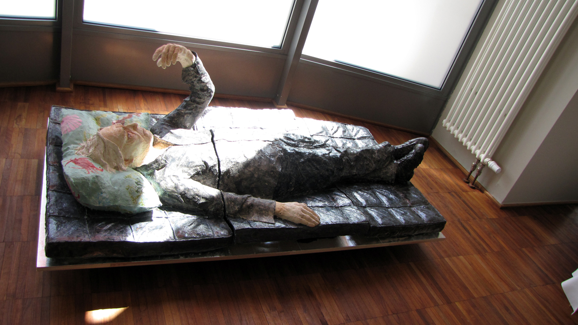 Die "12 Grundformen des verlassenen Bettes" von Simon Waßermann sowie die Skulptur eines "Schlafenden" von Silke Rehberg bilden vom12. bis zum 30. Mai 2012 die Mise-en-scène für die literarischen und philosophischen Erkundungen in der Denkerei.