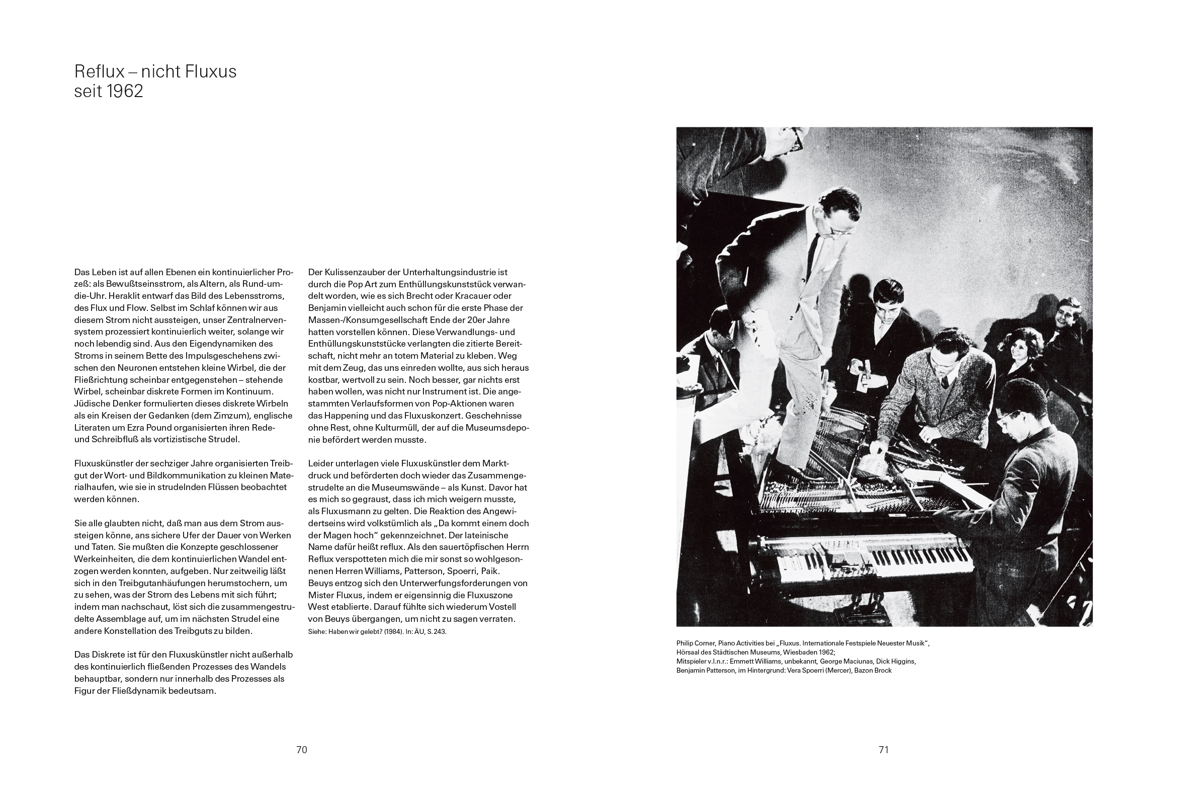 Das Diskrete ist für den Fluxuskünstler nicht außerhalb des kontinuierlich fließenden Prozesses des Wandels behauptbar, sondern nur innerhalb des Prozesses als Figur der Fließdynamik bedeutsam.