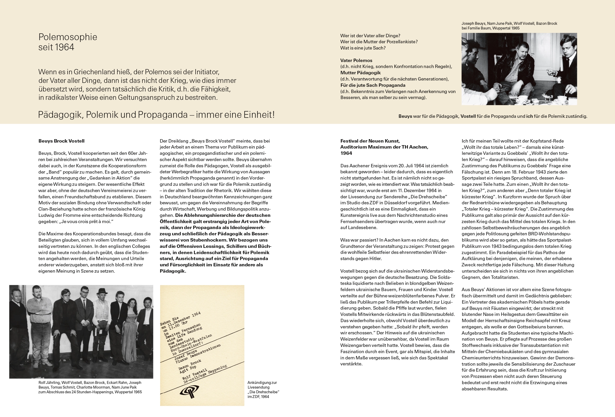 Siehe: Bekenntnisse zur Ausstellung „Beuys, Brock, Vostell“.