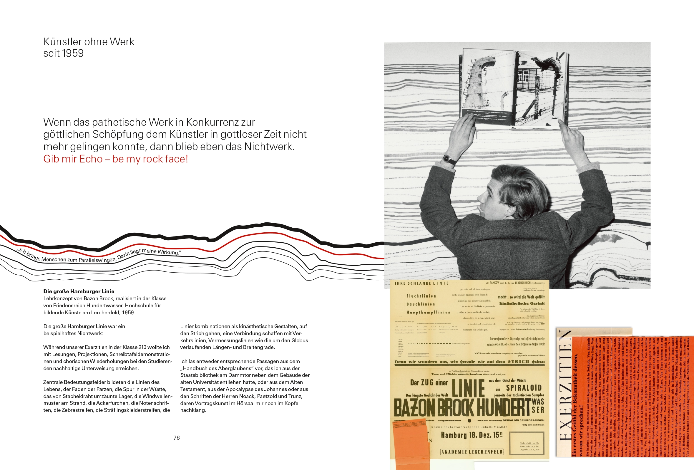 Wenn das pathetische Werk in Konkurrenz zur göttlichen Schöpfung dem Künstler in gottloser Zeit nicht mehr gelingen konnte, dann blieb eben das Nichtwerk. Gib mir Echo – be my rock face!