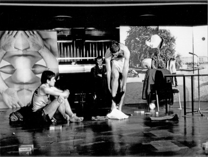 Die Protagonistin in einer Menschenmenge, den Zuschauern einer Demonstration zur "Förderung aufgeklärten Konsumverhaltens". In 15 Stationen werden von einzelnen Demonstranten kulturgeschichtlich prämierte Wegwerfbewegungen 'trainiert' (Grundtypen: der Diskuswerfer von Myron und der KZ-Aufseher, der die Schuhe von Liquidierten auf einen Haufen wirft). Das Training erfolgt unter Anleitung eines als Besserwisser ausgewiesenen Professors. Er versucht, das Leben als Haufenbildungsprozeß, die Welt als Warenlager darzustellen, dessen Bestimmung der Verbrauch ist. Veräußerlichung des Konsums als Wegwerfen, indem die zuvor geübten Wegwerfbewegungen auf das zeitgenössische Warenangebot übertragen werden. Die Waren sind auf der Spielfläche nach Art der Kaufhausregale aufgebaut. Die Zuschauer erwerben die Waren durch Kauf, um sie gleich darauf wegzuwerfen. Das Warenangebot wird durch die Wegwerfbewegung in Zivilisationsspuren verwandelt (Grundtyp: Ausgrabungen antiker Städte = Querschnitt unserer heutigen Kultur auf den Müllplätzen).