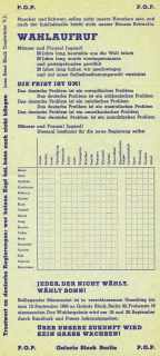 Beiliegender Stimmzettel ist in verschlossenem Umschlag bis zum 19. September 1965 an Galerie Block, Berlin 30, Frobenstr. 18 einzusenden. Das Wahlergebnis wird am 19. und 20. September durch Rundfunk und Presse bekanntgegeben.