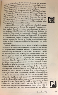 »Wer schreibt, der bleibt«, war einst die tröstliche Maxime der bürgerlichen Intellektuellen bei der Bewältigung ihrer Todesfurcht, dem auffälligsten Symptom von Zeitkrankheit. Aber das Zeitvergehen in Erwartung des Zeitlos-Werdens zu überstehen, ist heute eine sinnlose Empfehlung; denn wer bliebe überhaupt zeitlos ewig noch, wenn auch weitere 5% der Bevölkerung schreibend, malend, komponierend, kurz, Lebenswerke schaffend, überleben wollten? Wer sollte deren ewige Gegenwart garantieren, indem er die Toten vergegenwärtigt, also deren Werke memoriert? Selbst wenn es den Bewohnern der Canettistraße, der Neckermanngasse, des Tellerwegs und der Reaganallee gelänge, monatlich vor einer semantischen Polizei zu beweisen, daß sie ihrer kulturellen Pflicht zum pausenlosen Memorieren zeitloser Größe nachgekommen seien, würden sie wohl viel eher daran denken, sich selbst zu verewigen als die Canettis, Tellers, Neckermanns.