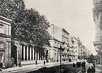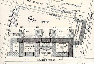 Die Wilhelmstraße sollte nach des Königs Willen eine Palaststraße, das Schmuckstück der Residenz, werden. Daher ließ er das ganze Gelände in große Parzellen aufteilen. Die Parzellen gab er unentgeltlich seinen hohen Staatsbeamten mit der Weisung zu bauen. Sie mußten hier, ob sie wollten oder nicht, stattliche Paläste errichten, die ihrer Stellung bei Hofe und in der Gesellschaft entsprachen. Reichspräsidentenpalais, Reichskanzlei, Auswärtiges Amt, Propagandaministerium und viele andere: sie alle weisen zurück auf jenen Hohenzoller, der mehr als jeder andere vor und nach ihm hart und stark, sparsam und selbstlos "Gemeinnutz vor Eigennutz" stellte, und dadurch nicht nur der eigentliche Begründer der Großmachtstellung des preußischen Staates, sondern auch einer der eifrigsten Förderer seiner Hauptstadt wurde. (41)