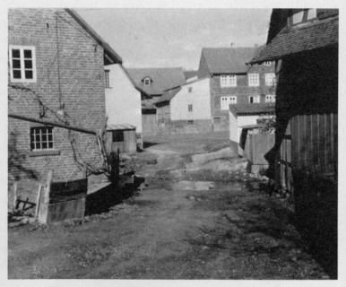 Kopfsteinpflaster vor der Tür . (Samstags wird das Moos aus den Ritzen gestochen.), Bild: © Melusine Huss (ohne Jahr).