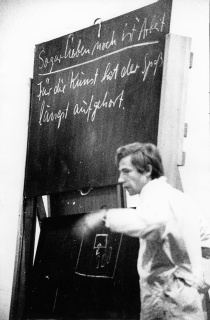 Sogar Lieben noch ist Arbeit. Für die Kunst hat der Spaß längst aufgehört., Bild: Aktion mit Joseph Beuys. Düsseldorfer Kunstakademie 1967 © Ute Klophaus.