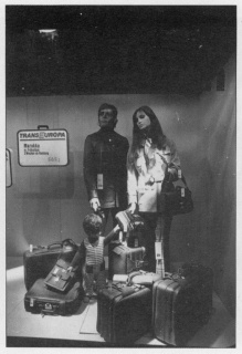 Die Arbeit eines zeitfesselnden Lavaspeiers übernehmen in unseren Tagen die Inszenatoren von Geschäftsschaufenstern. Wenn die Arbeiten der Arrangeure auch nicht authentische Momente der Totalität unseres Lebens reproduzieren können, so bringen sie es immerhin zu beachtlichen Annäherungen an die Komplexheit pompejanischer Szenen. Die Tendenz zu immer größer werdender Komplexheit der in Schaufenstern reproduzierten Lebenssituationen läßt sich deutlich ausmachen. Wo noch vor Jahren der Typ der isolierten Präsentation von Ausstellungsstücken dominierte wie in Abbildung (A), ist bereits jetzt der Präsentationstyp, wie ihn Abbildung (B) zeigt, vorherrschend. Abbildung (B) zeigt einen Ausschnitt aus einem Fenster, in dem schon hochgradig komplex eine soziale Situation präsentiert wird; eine Kleinstfamilie, im Begriff, per Bahn zu verreisen. Fenster (A) zeigt eine Unzahl von Ausrüstungsgegenständen, Kleidungsstücken, Instrumenten aneinandergereiht, als wüßte der Betrachter, der auf das Fenster zutritt, bereits, warum und wofür er einen der dort gezeigten Artikel zu erwerben wünscht. Einem solchen Käufer kommt es im wesentlichen darauf an, unter dem größten Angebot von Artikeln des gleichen Typs das seinem Kaufwunsch optimal Entsprechende herauszufinden. Seine Kaufmotivation wird durch die Präsentation der Artikel nicht verändert, sondern bestenfalls differenziert. Die im Fenster (A) durch Schaufensterpuppen dargestellten Personen treten hinter die Präsentation zurück, die Artikel sprechen für sich. Die Puppen demonstrieren ausschließlich in Einzelaspekten, wie ein Artikel, der im Fenster aus Platzmangel nur in zusammengefaltetem Zustand sichtbar ist, als entfaltetes Stück aussieht.