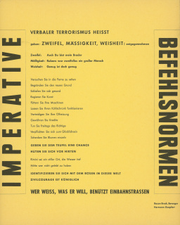 Imperative Befehlsnormen, Bild: Aktion "Donnerstagsmanifest" von Bazon Brock und Hermann Goepfert, Frankfurt am Main 1962..