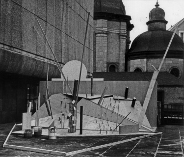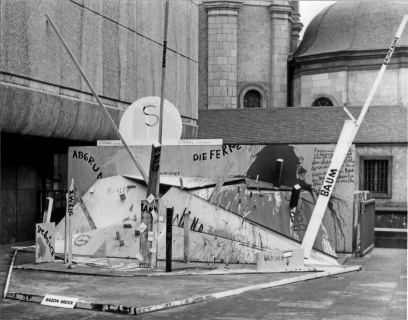 Theoretisches Objekt, 1969, Holz und Plakafarbe, Kunsthalle Düsseldorf, Beitrag zur Disputation 'Kunst und Demokratie'.