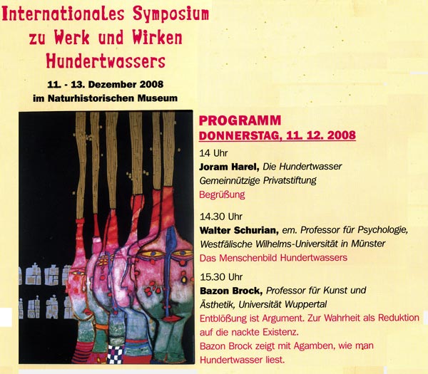 Bazon Brock zeigt mit Agamben, wie man Hundertwasser liest