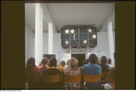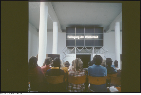 Der folgende Text wurde mit den entsprechenden Dia-Abbildungen aus dem „Audiovisuellen Vorwort“ veröffentlicht in: Bazon Brock, Ästhetik als Vermittlung, Köln 1977, S. 265-294. Diese Textfassung basiert auf dem Programmtext des audiovisuellen Vorworts zur documenta 5, Kassel 1972, synchron zu 2.000 Dias der AV-Präsentation. Der neu strukturierte Text wurde ergänzt um einige Passagen aus dem gegenüber der Documenta-Schau zwar gekürzten, ansonsten aber weitestgehend übereinstimmenden Text zum AV-Programm der Ausstellung ‚Wirklichkeit in Bildwelten heute‘ im Haus Deutscher Ring/Hamburg, Juni 1973. Abschnitt 3 wurde außerdem um die ‚Strukturprinzipien‘ der documenta 5 erweitert, die dem Manuscript von Bazon Brock ‚Erläuterungen zum Konzept der d5‘ entnommen wurden. Die Didaktik wie die Terminologie dieses Vermittlungsansatzes – zum Zeitpunkt der documenta 5 noch als „Gauklertanz neurotischer Gespenster“ und „ideologischer Weihrauch“ diskriminiert (so Thilo KOCH in ‚Die Kunst auf dem Prüfstand: documenta 5‘ in: KUNSTMAGAZIN 47/1972) – sind in der Kunsttheorie, im Feuilleton wie in der Ausstellungspraxis als inzwischen nahezu selbstverständlicher Bezugsrahmen gewertet und weiterentwickelt worden. Der AV-Präsentation auf der documenta 5 ging 1968 eine ‚Besucherschulung‘ Brocks auf der documenta 4 voraus, die allerdings in wesentlich kleinerem Rahmen stattfand.