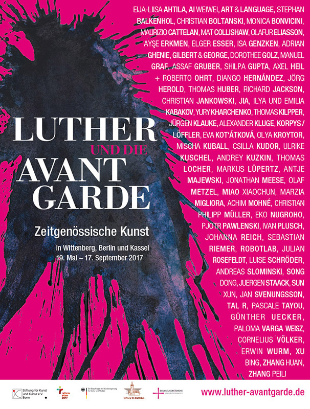 Luther und die Avantgarde ist eine Kooperation der Stiftung für Kunst und Kultur e.V. Bonn mit dem Reformationsjubiläum 2017 e.V. und Teil der Weltausstellung Reformation (www.stiftungkunst.de // www.r2017.org).