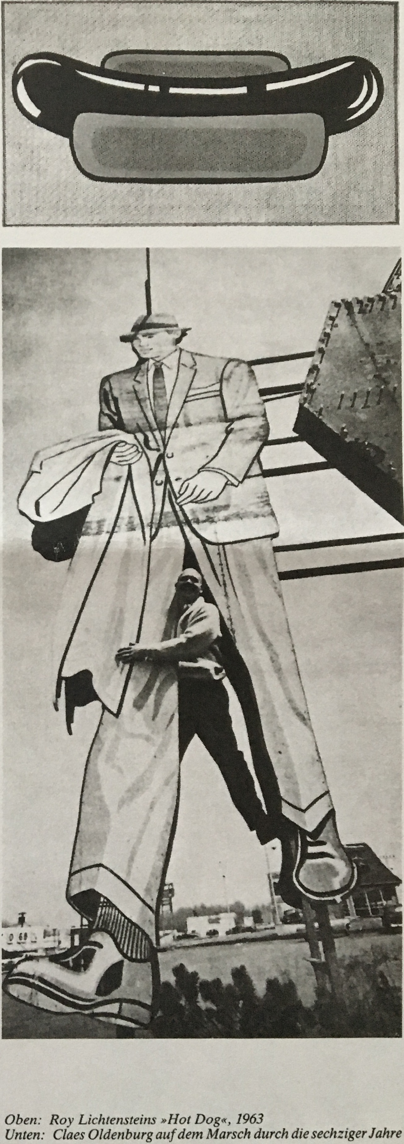 Kurz, die Pop-Programmatik war affirmativ. Dummerweise hatte der alte Marcuse das noch nicht mitgekriegt und versuchte immer noch, den jungen Leuten jenen Typus von Kulturkritik nahezulegen, den er als junger Mann in den 20er Jahren kennengelernt hatte. Und Marcuse veröffentlichte einen alten Aufsatz, in dem er den affirmativen Charakter der Kultur geißelte. Da galt »affirmativ« als positiv rechtfertigend und zustimmend. Davon konnte in der Popart keine Rede sein, obwohl es natürlich genügend Künstler gab, die selig zu sein schienen über die Gelegenheit, mit dem Talent von Plakatmalern und der Haltung von Werbefritzen ins Allerheiligste der Malereigeschichte vordringen zu können: ins Pantheon der allgemeinen Akklamation durch Herr und Gott. Marcuses platte Begriffshülse »affirmativ« stiftete jedenfalls soviel Verwirrung, daß der philosophisch einwandfreie Begriffsgebrauch unter die Räder geriet. Affirmation ist ja Negation der Negation als erneute Ausgangsposition. Vielleicht hätte man stets negative Affirmation sagen sollen, wenn man die Haltung der Popart zu kennzeichnen versuchte. Aber nun ja – inzwischen ist allgemein bekannt, daß der Dienst genau nach Vorschrift die denkbar vollständigste Sabotage des Dienstes ist. Und also haben sogar schon einige Gewerkschafter verstanden, was affirmative Strategie bedeutet, was sie den Popartisten bedeutete. Was an der Popart noch heute beachtlich ist, verdankt sich dieser Haltung. Der Rest, vielleicht sogar der überwiegende Teil, ist doch bloß schlechte Reklamemalerei.