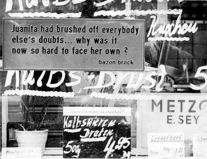 Literaturblech „Juanita had brushed off everbody else's doubts ... why was it now so hard to face her own?“, Bild: Theoretisches Objekt 1967 © Günter Rambow (ohne Jahr).