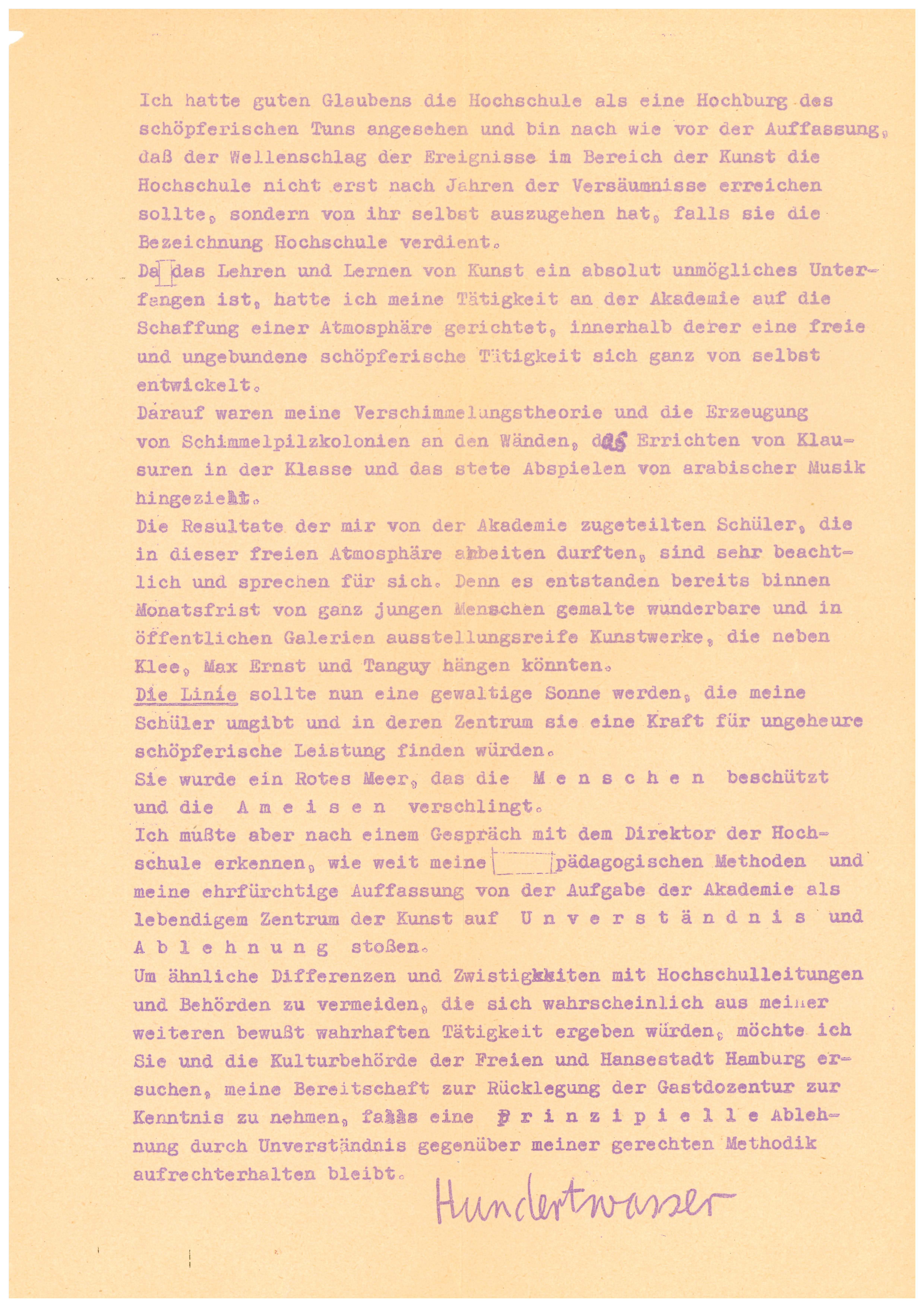 Lehrkonzept von Bazon Brock und gemeinsame Aktion von Bazon Brock und Friedensreich Hundertwasser, realisiert in der Klasse von Friedensreich Hundertwasser an der Hochschule für bildende Künste am Lerchenfeld, 1959