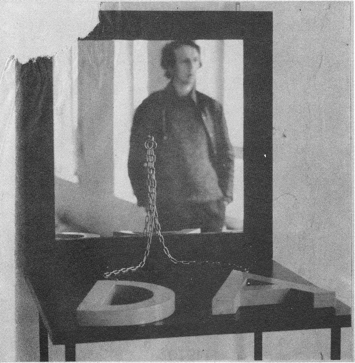 Daß in einem einzigen Objekt zumindest diese drei Funktionen erfüllt werden können, ist die Arbeitshypothese von H L R. Beispiel: Heydemanns double hand mouva. Auf die obere Plattform zweier Sockel sind die Negativformen der linken und rechten Hand eines Handelnden eingeprägt. Auf den Druck der Hände hin bewegt sich jeder Sockel unabhängig vertikal; diese Vertikalbewegung wird umgesetzt in die Horizontalbewegung einer Tonne, die frei vor beiden Säulen auf dem Fußboden liegt. Die Negativform der Hände (Offen ausgestreckte, leicht gewölbte Handflächen) bilden auf Anhieb einen Funktionszusammenhang, den wir als ,,Tonnenrollen“ kennen. Rollende Kraft und gerollte Tonne werden differenziert und ihrer unmittelbaren Bezogenheit auf einander entkleidet.