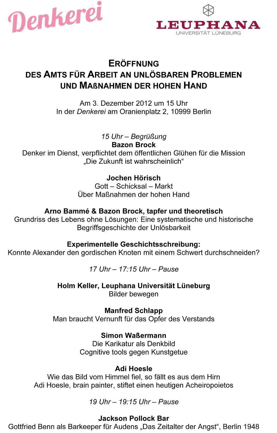 Eröffnung der Denkerei am 3.12.2011 in Berlin-Kreuzberg, Bild: Programm. + 7 Bilder