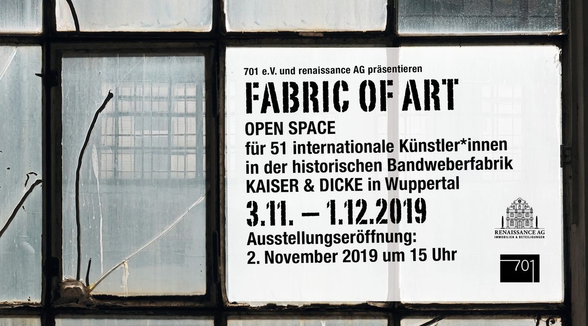 Mit „Fabric of Art“ gestalten 51 bildende Künstlerinnen und Künstler aus zahlreichen Ländern das 8.000 qm2 große, denkmalgeschützte Industrieareal der einstigen Bandweberfabrik Kaiser & Dicke in Wuppertal-Barmen zu einem Open Space auf Zeit. Fabric of Art ist eine künstlerische Auseinandersetzung durch alle Medien der bildenden Kunst an einem Ort, der exemplarisch nicht nur für die Geschichte der Stadt Wuppertal steht, sondern gleichfalls für die industriell geprägte aktuelle globale Entwicklung.