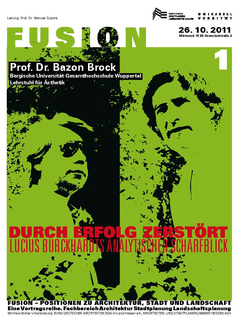 Durch Erfolg zerstört - Lucius Burckhardts analytischer Scharfblick „Fusion – Positionen zu Architektur, Stadt und Landschaft“ Vortragsreihe der Universität Kassel, Bazon Brock am 26.10.2011