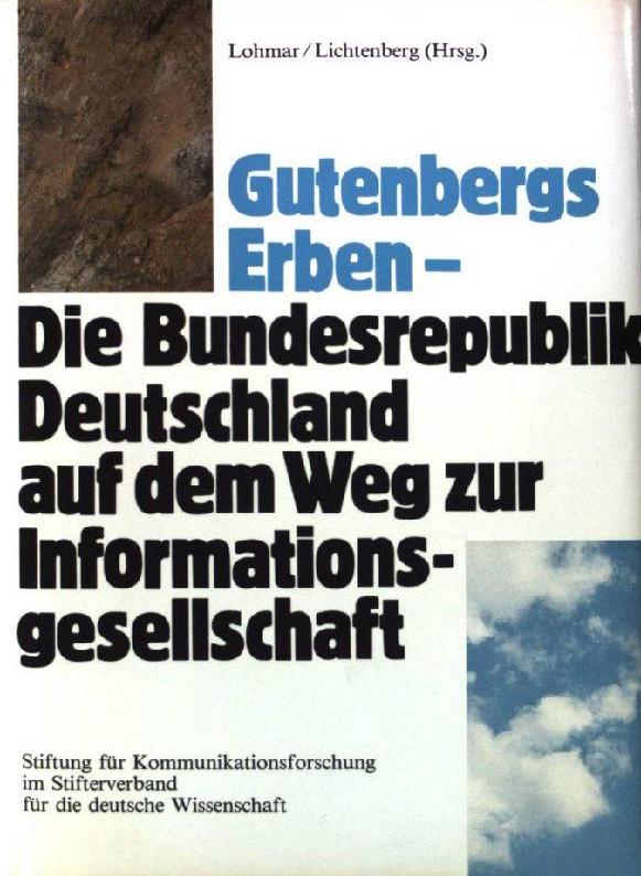 Gutenbergs Erben - Die Bundesrepublik Deutschland auf dem Weg zur Informationsgesellschaft. Hrsg. von Ulrich Lohmar und Peter Lichtenberg. Verlag: Stiftung für Kommunikationsforschung, 1986Die Autoren: Dieter Balkhausen, Kurt H. Biedenkopf, Norbert Blüm, Bazon Brock, Martin Bullinger, Wolfgang Burhenne, Meinolf Dierkes, Hoimar von Ditfurth, Dietrich Elias, Charles D. Ferris, Manfred Fischer, Burghard Freudenfeld, Rainald von Gizycki, Egon Görgens, Erich Häußer, Volker Hauff, Hans Heigert, Horst Jürgen Helle, Roman Herzog, Werner Holzer, Paul Kevenhörster, Fritz Krückeberg, Klaus Dieter Leister, Ulrich Lohmar, Hermann Lübbe, Heinz Markmann, Ernst-Joachim Mestmäcker, Elisabeth Noelle-Neumann, Eduard Pestel, Rüdiger Proske, Heinz Riesenhuber, Hans-Christian Röglin, Stuart Savoy, Wolfgang Schäuble, Winfried Schmähl, Andreas von Schoeler, Peter Schwartz, Spiros Simitis, Carl-Dieter Spranger, Rudolf Ullner, Karl-Heinrich Vöge, Gerhard Zeidler