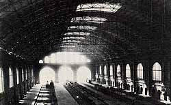 Auch das Anhalter-Bahnhofsgebäude besaß eine basilikale Struktur. Dieser Kopfbahnhof, das A und O des Reisens, nannte W. Benjamin "Mutterhöhle der Eisenbahnen". Hier wurde die Nähe der Ferne geopfert und die Begrenztheit des Alltags sollte in unbegrenzte Reiseträume überführt werden. Die Züge verließen die Bahnhofshalle, den Ort des Wandelns und Verwandelns, durch drei große Torbögen in die lichte Weite des Südens.