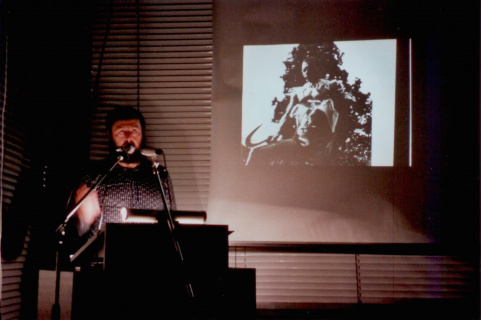 Kongress "Lebensformen der Zwanziger Jahre", Bild: Harald Szeemann spricht über den Monte Verità. Internationales Designzentrum Berlin, 05.-09.10.1977. Foto: Linde Burkhardt..