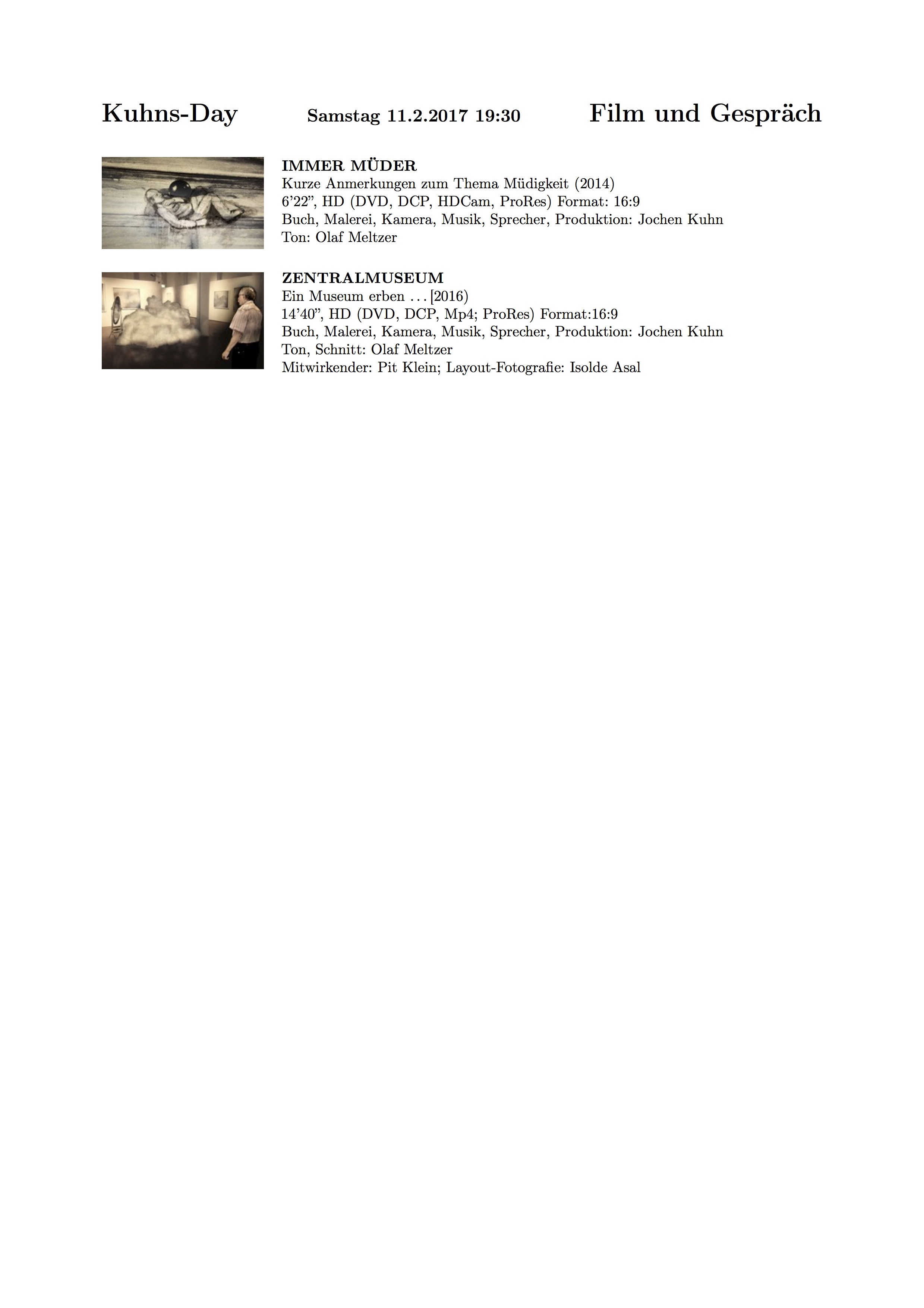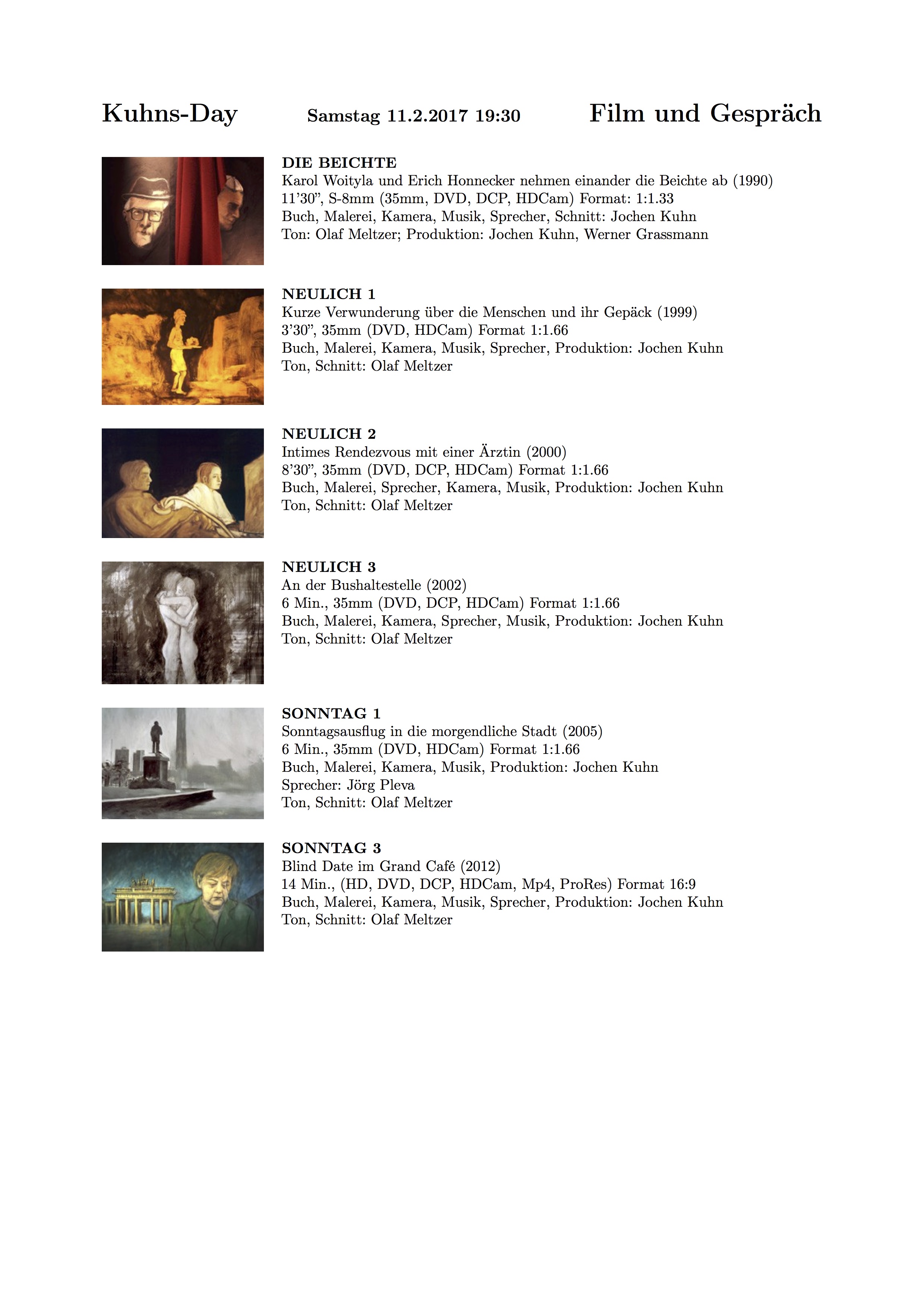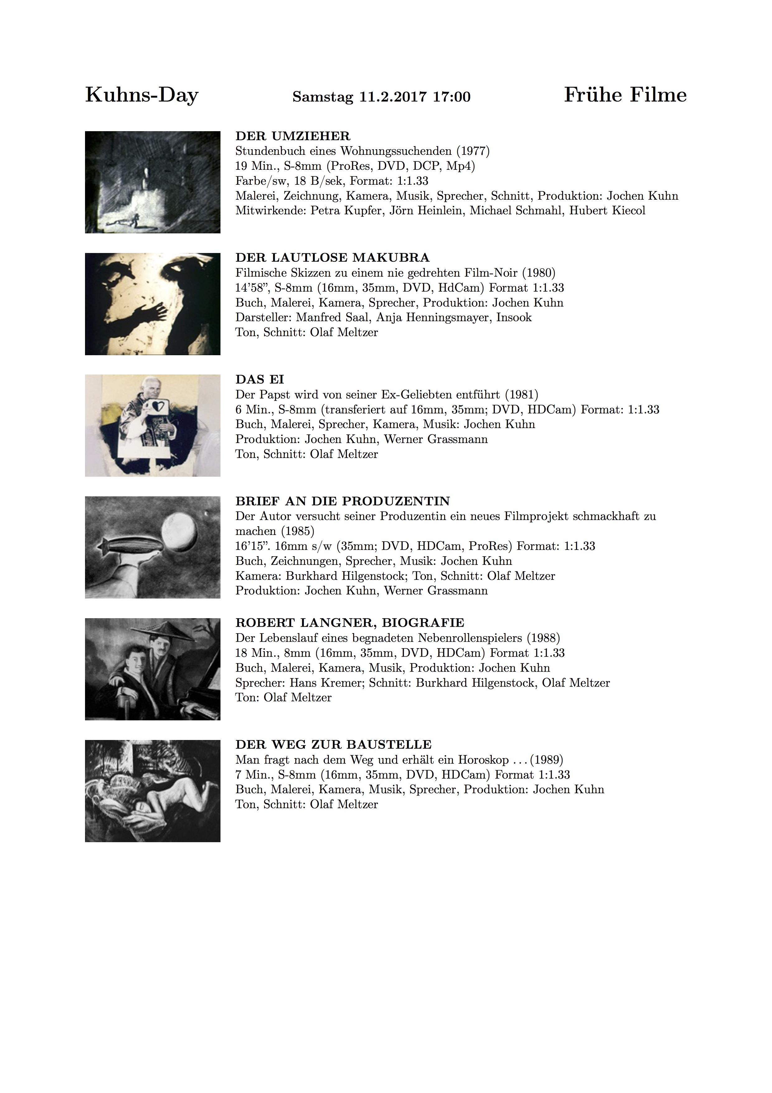 In der Denkerei wird zum ersten Mal ein Großteil des gesamten Werks von Jochen Kuhn präsentiert. 19 Filme in 7 Stunden.