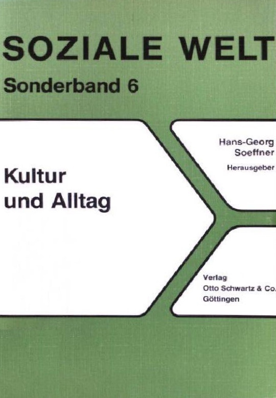 Sonderband VI der Sozialen Welt; enthält u.a.: Thomas Luckmann: Die "massenkulturelle" Sozialform der Religion; Gerhard Schulze: Alltagsästhetik und Lebenssituation; Horst Wenzel: Höfische Repräsentation: Zu den Anfängen der Höflichkeit im Mittelalter; G. Ter-Nedden: Das Ende der Rhethorik und der Aufstieg der Pubizistik; Hubertus Fischer: Grammatik der Sterne und Ende der Welt. Die Sintflutprognose von 1524; J. Bergmann: Haustiere als kommunikative Ressourcen; Bruno Hillebrand: Bäuerliche Eßkultur; T. Allert: Autoaufkleber. Zu einer Soziologie des Straßenverkehrs; H. Knoblauch: Wenn Engel reisen: Kaffeefahrten und Altenkultur; Hans Ulrich Gumbrecht: "Ihr Fenster zur Welt". Wie aus dem Medium 'Fernsehen' die 'Fernsehwirklichkeit' wurde...