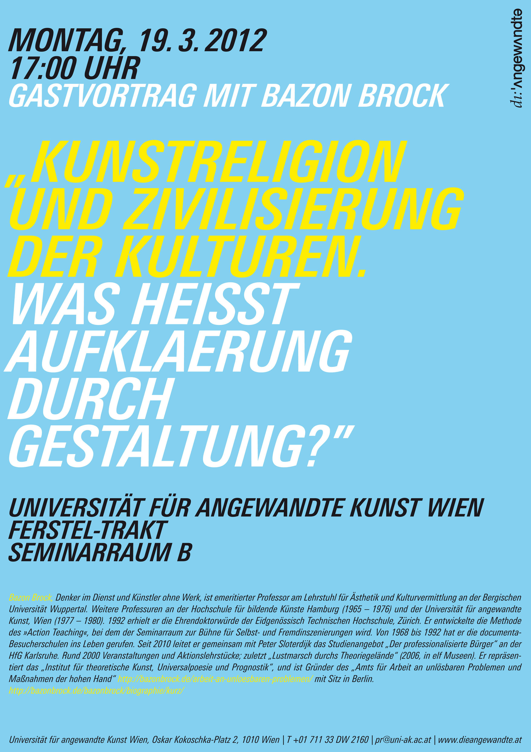 Vortrag "Kunstreligion und Zivilisierung der Kulturen. Was heißt Aufklärung durch Gestaltung?", Bild: Universität für angewandte Kunst Wien, 19.03.2012..
