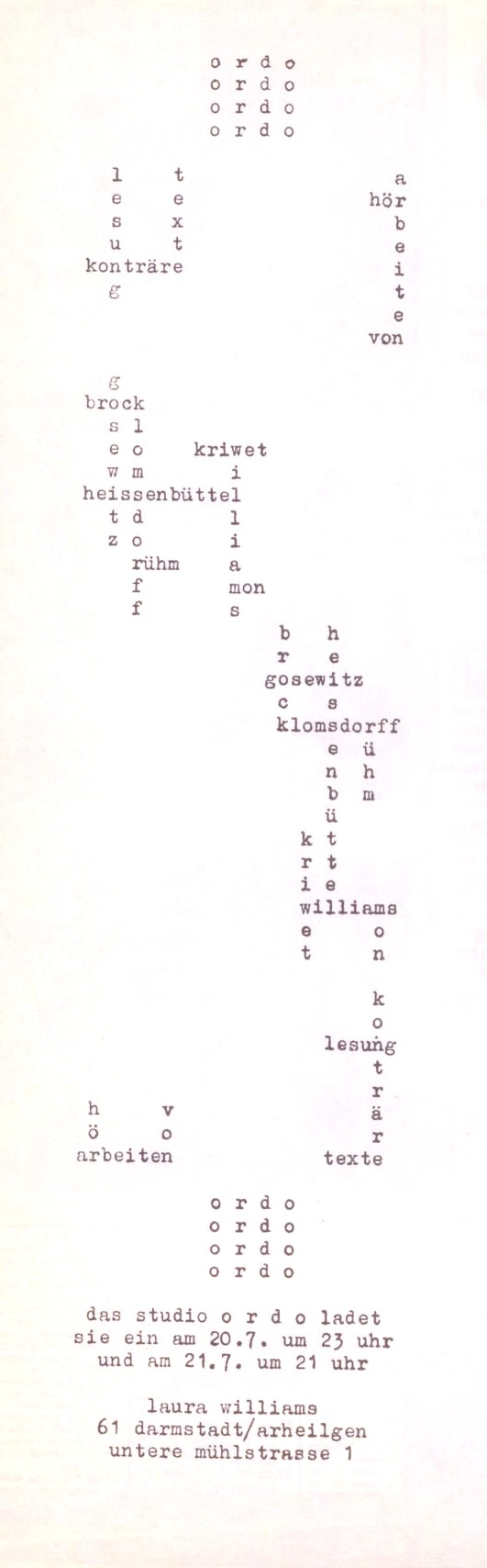 von Brock, Kriwet, Heißenbüttel, Rühm, Mon, Gosewitz, Klomsdorff, Williams