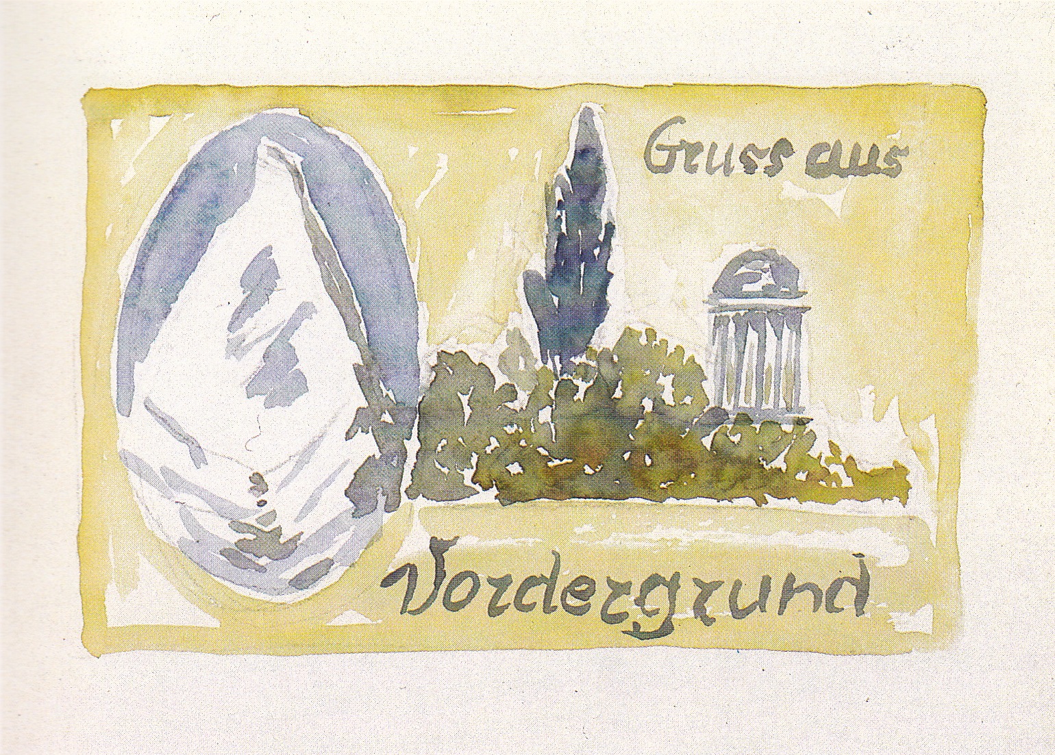 Der Gruß aus Hintergrund wird zu einer Absurdität, wie es unsere touristische Landschaftserfahrung ist; denn der Hintergrund ist eben das fernab Liegende und deshalb unsichtbar Werdende; um es zu erkennen, müssen wir uns aus dem Vordergrund in den Hintergrund begeben, wodurch der Hintergrund zu einem Vordergrund und der ehemalige Vordergrund zu einem Hintergrund werden.