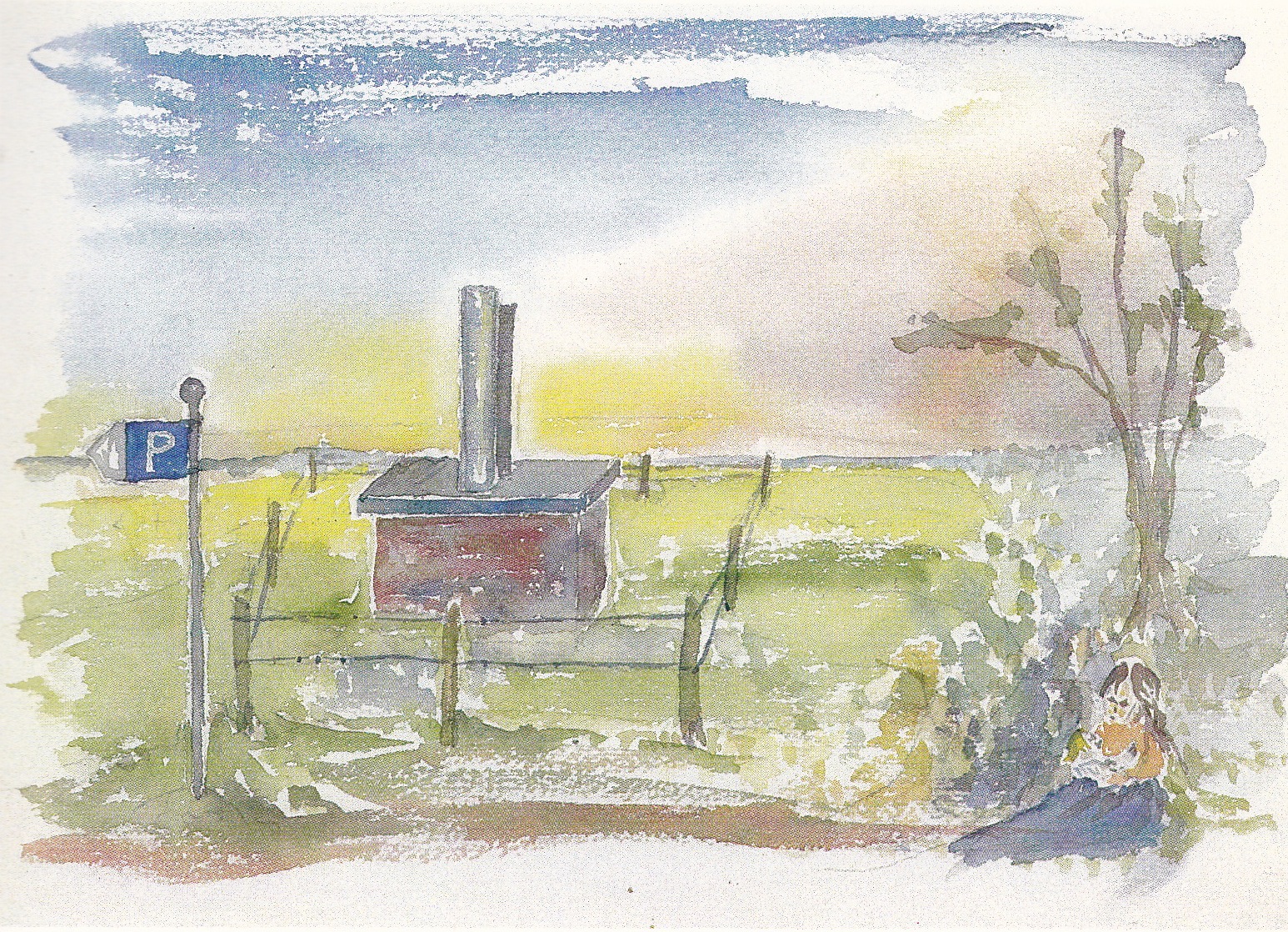 Aquarell 9 zeigt das bekannte Parkplatzschild in einer Landschaft, die allein durch dieses Schild aufhört, das zu sein, was ihr vom naiven Touristen zugeschrieben wird. Die Reise in die Wildnis per zivilisatorischem Komfort ist eben keine Reise in die Wildnis mehr, selbst wenn am Zielpunkt der Reise noch Wildnis als bloße Natur vorhanden wäre.