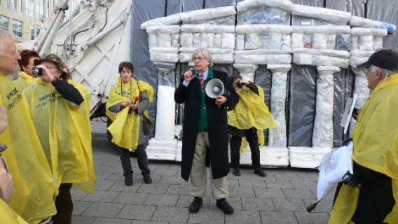 Prozession "Gott und Müll", Bild: Aktion "Lustmarsch durchs Theoriegelände", Frankfurt 2006.