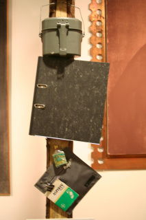 Die Spitze des zweiten Thementotems bildet die wilhelminische Pickelhaube, eine Art militärischer Version der Tarnkappe des Nibelungen, die einem Totenschädel aufgesetzt wurde. Es ist eine verhüllende Enthüllung besonderer Klasse, daß deutsche Krieger von den Zeiten der Freiheitskriege bis ins Dritte Reich ausgerechnet das Emblem des Totenschädels trugen. Soldaten führen immer nur ein Leben zum Tode, o Heidegger! Das ist der Grund, weshalb sie immer schon den Denkern voraus waren und selbst deutsche Philosophen den Ernstfall des Krieges nicht in ihr Nachdenken über die Welt aufnahmen. Der mit Pickelhaube bewehrte Soldat ist der Inbegriff der kulturellen Todes- und Tötungsbereitschaft. Das Lützow’sche Freikorps (1813) führte das Totenschädelemblem zum Zeichen unbedingten Opferwillens im Namen des deutschen Widerstands gegen und Befreiungskampfes von Napoleon ein. Später bediente sich die SS ebenfalls dieser Emblematik, ein weiteres Indiz, um die Deutschen in den Augen der anderen Nationen als mörderische Krieger und todessüchtige Kanonenhelden erscheinen zu lassen.