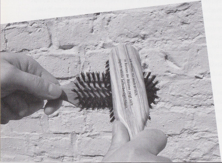 Um unseren Besuchern Selbstbezüglichkeit vor Augen zu führen, verweise ich auf ein ausgezeichnetes theoretisches Objekt, das aus einem Paar Bürsten besteht. Eine Bürste wird für gewöhnlich verwendet, um Kleidung, Schuhe oder Haare zu bürsten. Dabei entfernt die Bürste den Schmutz von einer Oberfläche, indes sie selbst beschmutzt wird. Ein Teil des Schmutzes wird durch Zerstäubung in die Umwelt entsorgt, der Rest bleibt in der Bürste hängen; also wird die Bürste durch ihre sinngemäße Anwendung selbst schmutzig. Wendet man das Prinzip des Bürstens auf die Bürste selbst an, wird sie wieder sauber. Durch das instinktiv richtige Bürsten der schmutzigen Bürste entfaltet sich das Geheimnis der Reflexivität. Unser kleines Bürstenpaar mag man sich an die Garderobe hängen, damit man sich jederzeit darüber verständigen kann, wie der häusliche Alltag als Philosophenschule Orientierung bietet. Zu Hause bewährt sich das Zauberwort der Moderne – Reflexivität: Im Bürsten der schmutzigen Bürsten zeigt sich täglich reinigende Selbstbezüglichkeit.