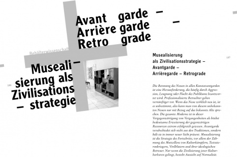 Die Betonung des Neuen in allen Kunstavantgarden ist eine Herausforderung, die häufig durch Aggression, Leugnung oder Flucht des Publikums beantwortet wird. Professionalisierte Betrachter gehen vernünftiger vor. Wenn das Neue wirklich neu ist, ist es unbestimmt, also kann man von diesem unbekannten Neuen nur mit Bezug auf das bekannte Alte sprechen. Die gesamte Moderne ist in dieser Vergegenwärtigung von Vergangenheiten als höchst bedeutsame Erweiterung der gegenwärtigen Ressourcen extrem erfolgreich gewesen. Avantgarde verabschiedet sich nicht aus den Traditionen, sondern hält sie in immer neuer Sicht präsent. Musealisierung ist die Strategie des Fortschritts, vor allem der Zähmung des Mutwillens von Kulturkämpfern, Testosteronkriegern, Virilblutern und ihrer ideologischen Betreuer. Nur wenn die Zivilisierung jener Kulturbarbaren gelingt, besteht Aussicht auf Normalität.