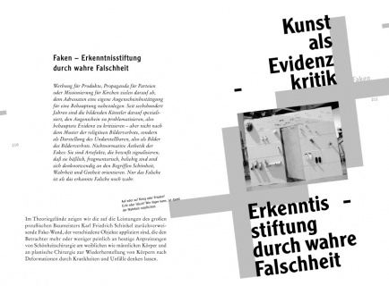 Werbung für Produkte, Propaganda für Parteien oder Missionierung für Kirchen zielen darauf ab, dem Adressaten eine eigene Augenscheinbestätigung für eine Behauptung nahezulegen. Seit sechshundert Jahren sind die bildenden Künstler darauf spezialisiert, den Augenschein zu problematisieren, also behauptete Evidenz zu kritisieren – aber nicht nach dem Muster der religiösen Bilderverbote, sondern als Darstellung des Undarstellbaren, also als Bilder des Bilderverbots. Nichtnormative Ästhetik der Fakes: Sie sind Artefakte, die bewußt signalisieren, daß sie häßlich, fragmentarisch, beliebig sind und sich denknotwendig an den Begriffen Schönheit, Wahrheit und Gutheit orientieren. Nur das Falsche ist als das erkannte Falsche noch wahr.