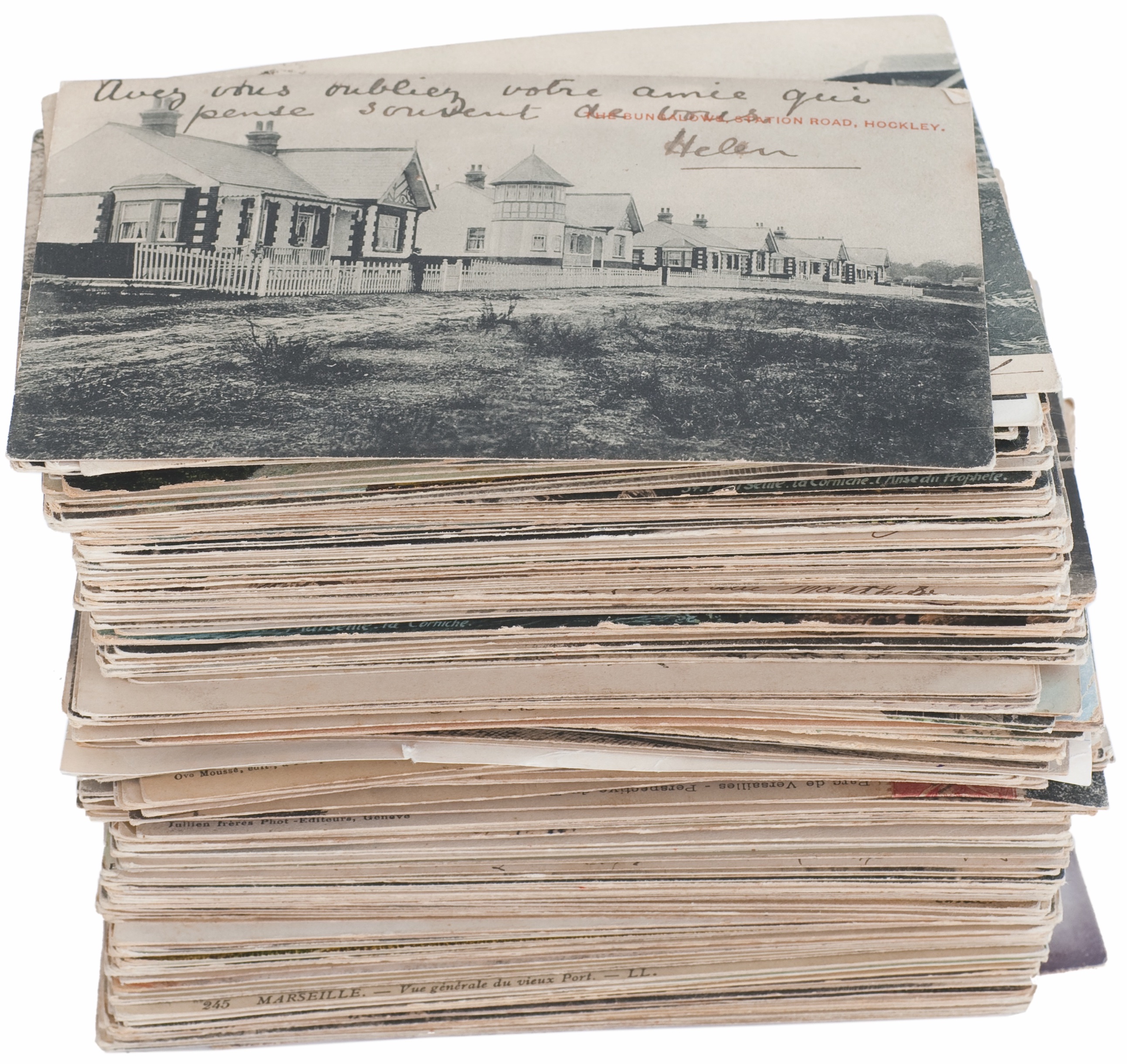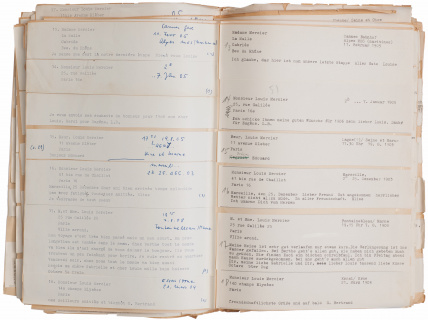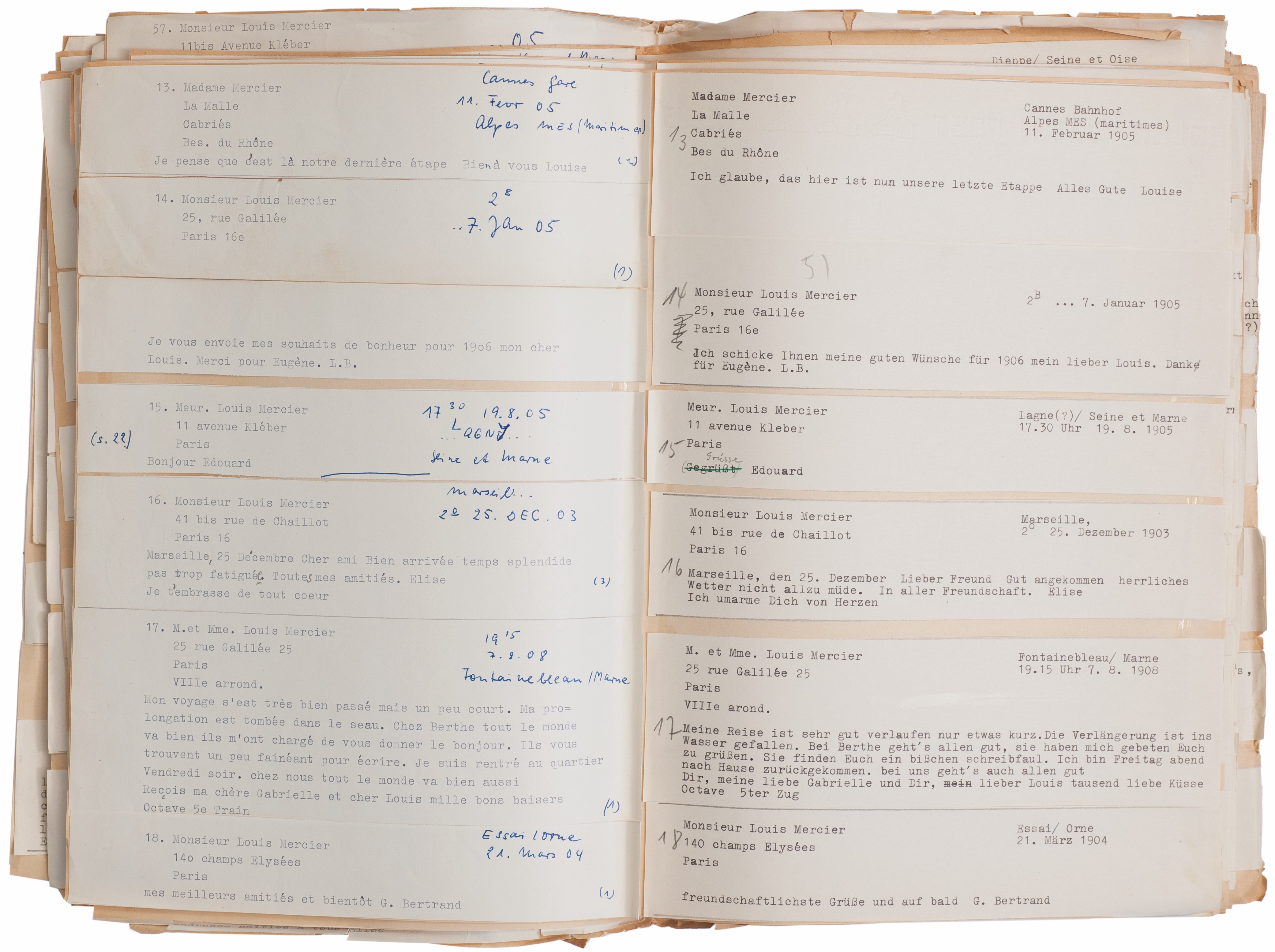„Der Postkartenroman basiert auf einem Konvolut von 318 Ansichtskarten, die zu Beginn des 20. Jahrhunderts von verschiedenen Mitgliedern einer französischen Familie geschrieben worden waren. Die bebilderten Postkarten enthalten Urlaubsgrüße, Berichte von familiären Ereignissen oder Hinweise auf den Gesundheitszustand von Verwandten. Das Konzept sah vor, die Mitteilungen auf den Karten ins Deutsche zu übersetzen und in chronologischer Reihenfolge als Buch zu veröffentlichen. Während die Publikation nicht zustande kam, fand 1965 ein Vortrag im Rahmen der dritten Soiree in der Galerie René Block statt.“ (ÄV, 1977, S. 998 f.)