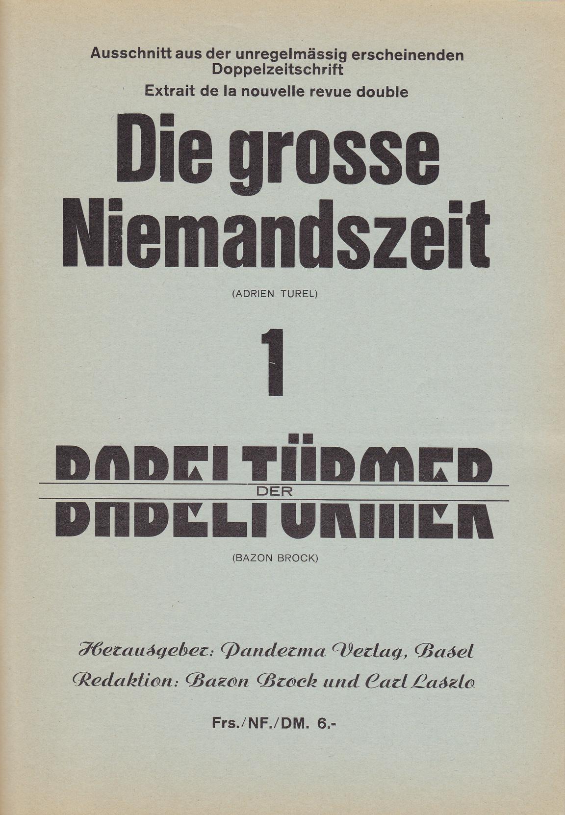 Ausschnitt aus der unregelmäßig erscheinenden Doppelzeitschrift "Die grosse Niemandszeit" (Adrien Turel) / "Der Babeltürmer" (Bazon Brock) Nr. 1
