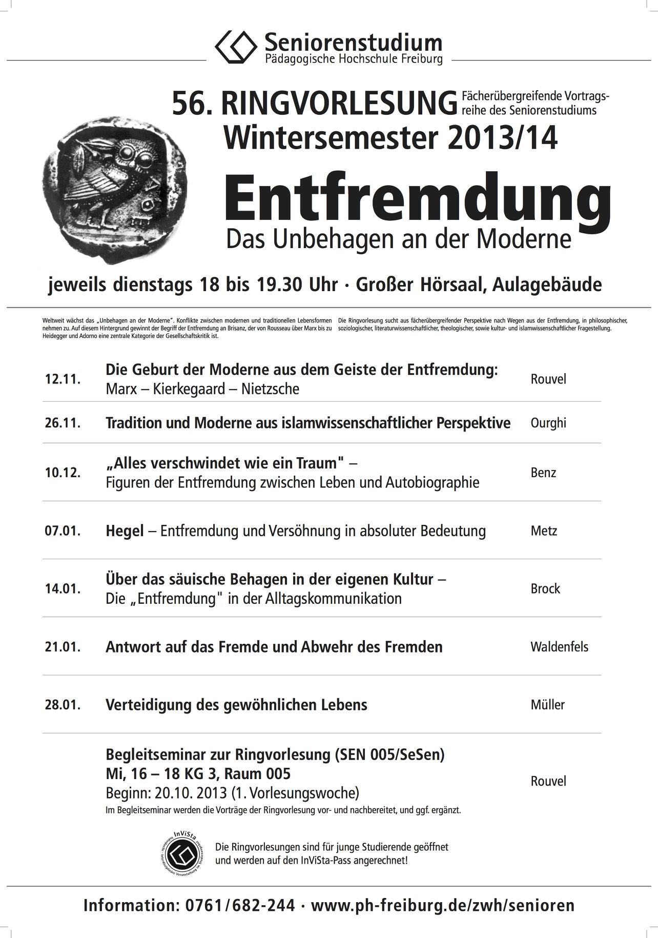 Vortrag / Rede Ringvorlesung „Entfremdung – Das Unbehagen an der Moderne“
