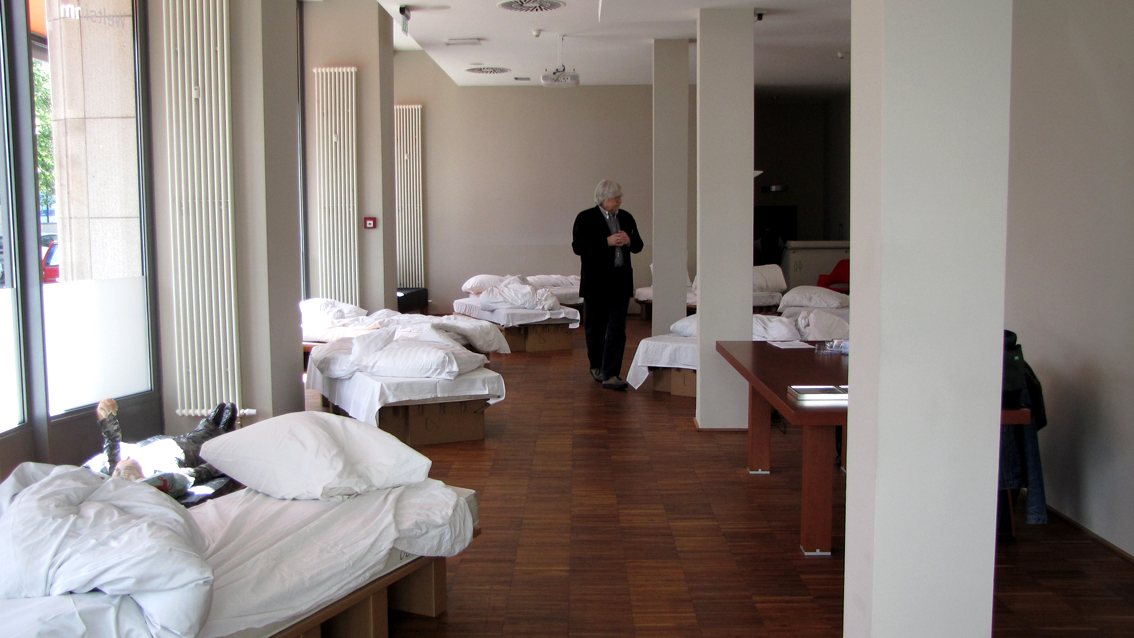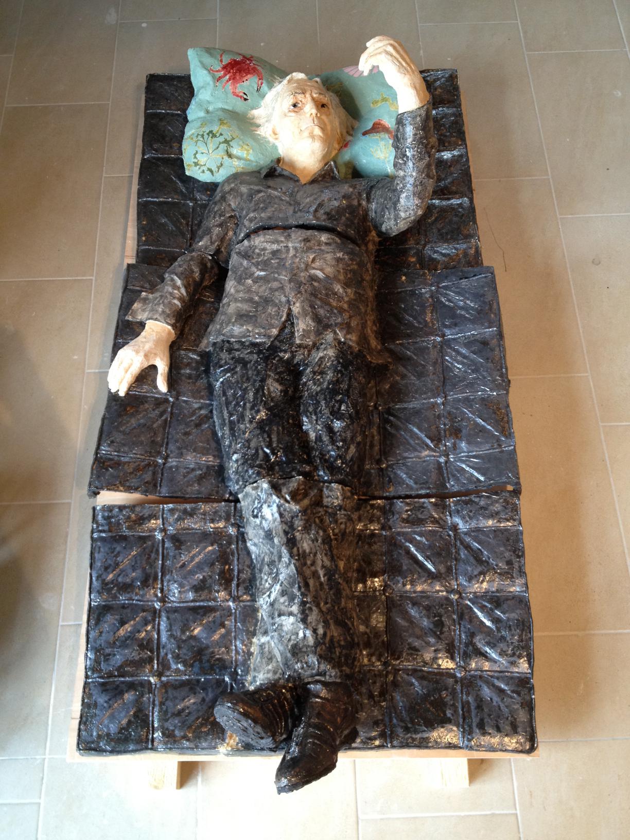 Die "12 Grundformen des verlassenen Bettes" von Simon Waßermann sowie die Skulptur eines "Schlafenden" von Silke Rehberg bilden vom12. bis zum 30. Mai 2012 die Mise-en-scène für die literarischen und philosophischen Erkundungen in der Denkerei.